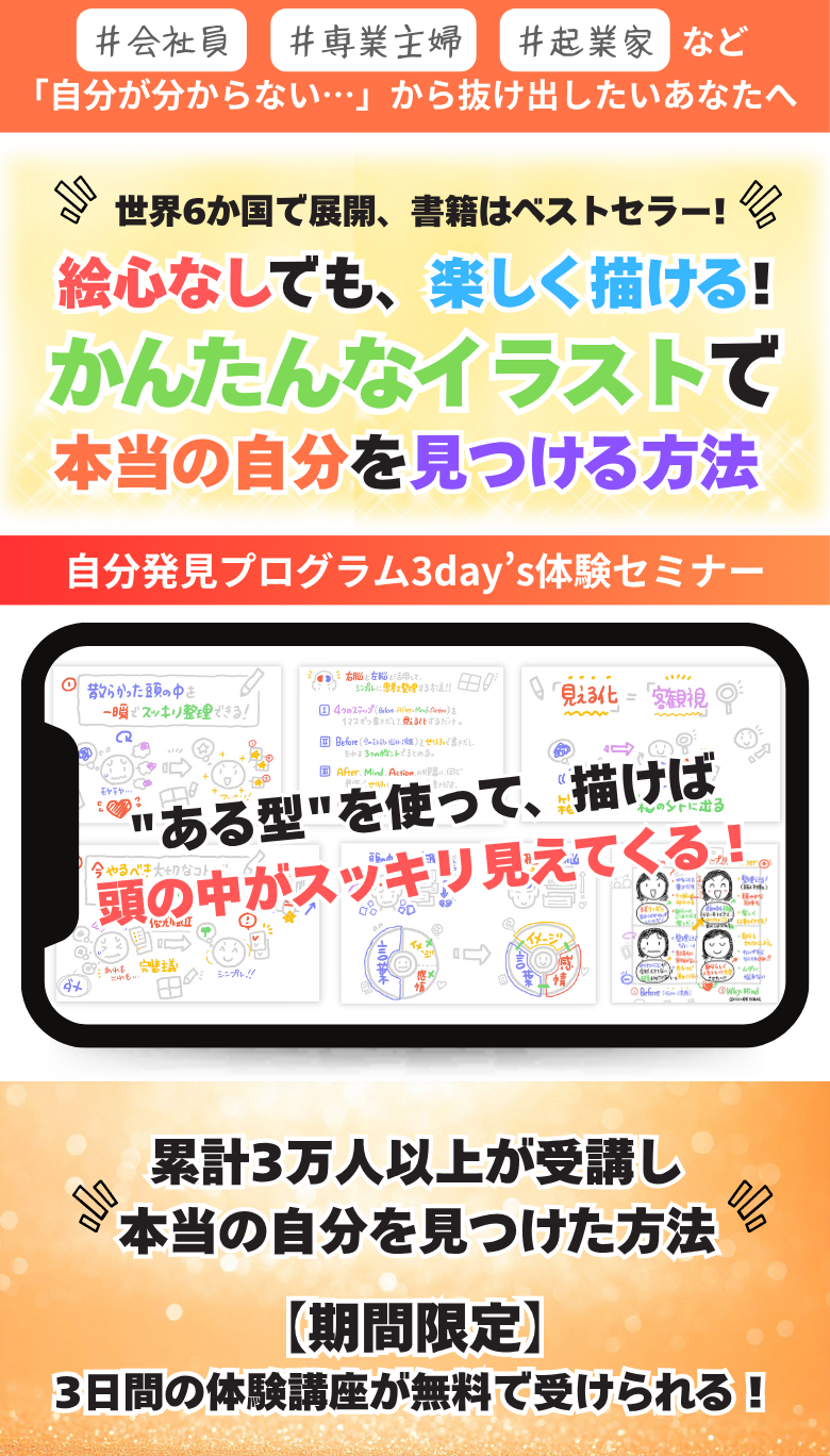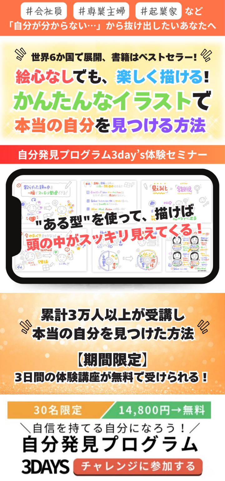 「イラスト思考」の共同開発者。脳科学×見える化の技術を組み合わせた独自の「イラスト自己分析プログラム」は常に満席となり、多くの受講生に支持される。
